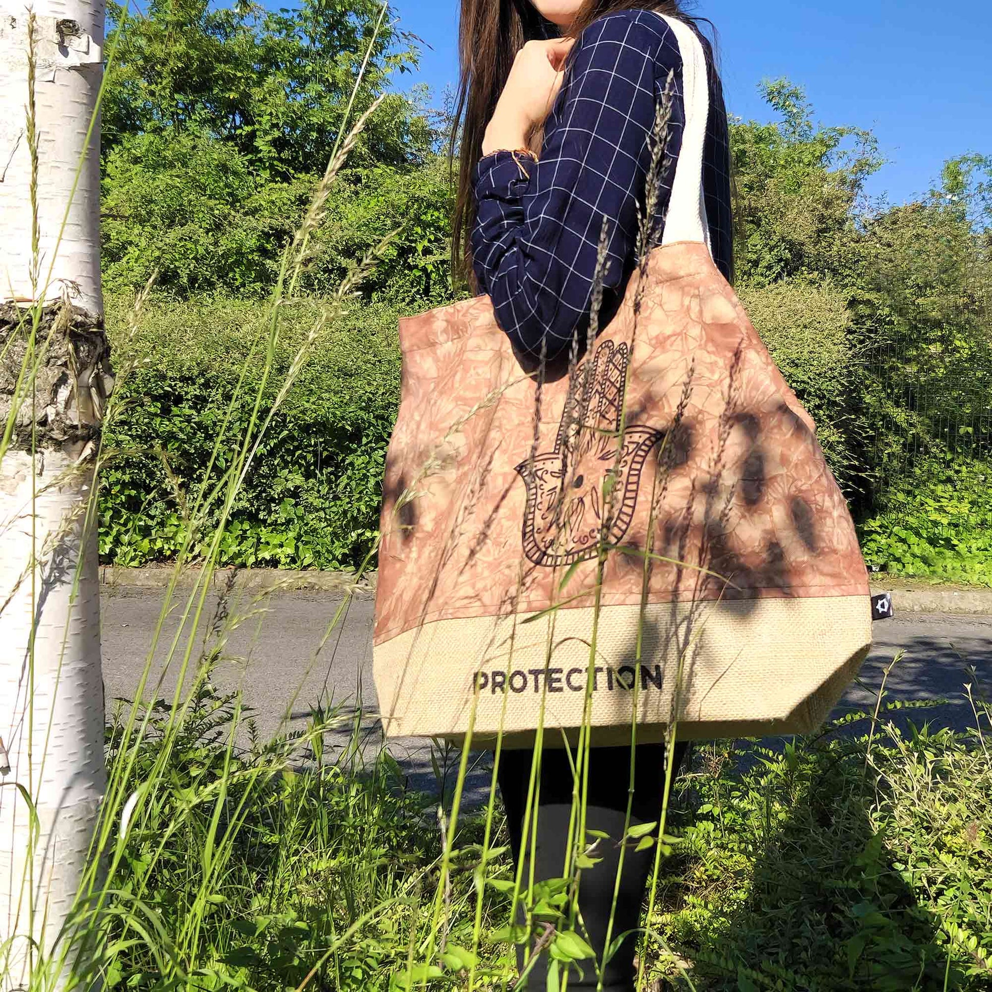 Bolso natural Hamsa terracota – Yute y algodón 50x42 cm