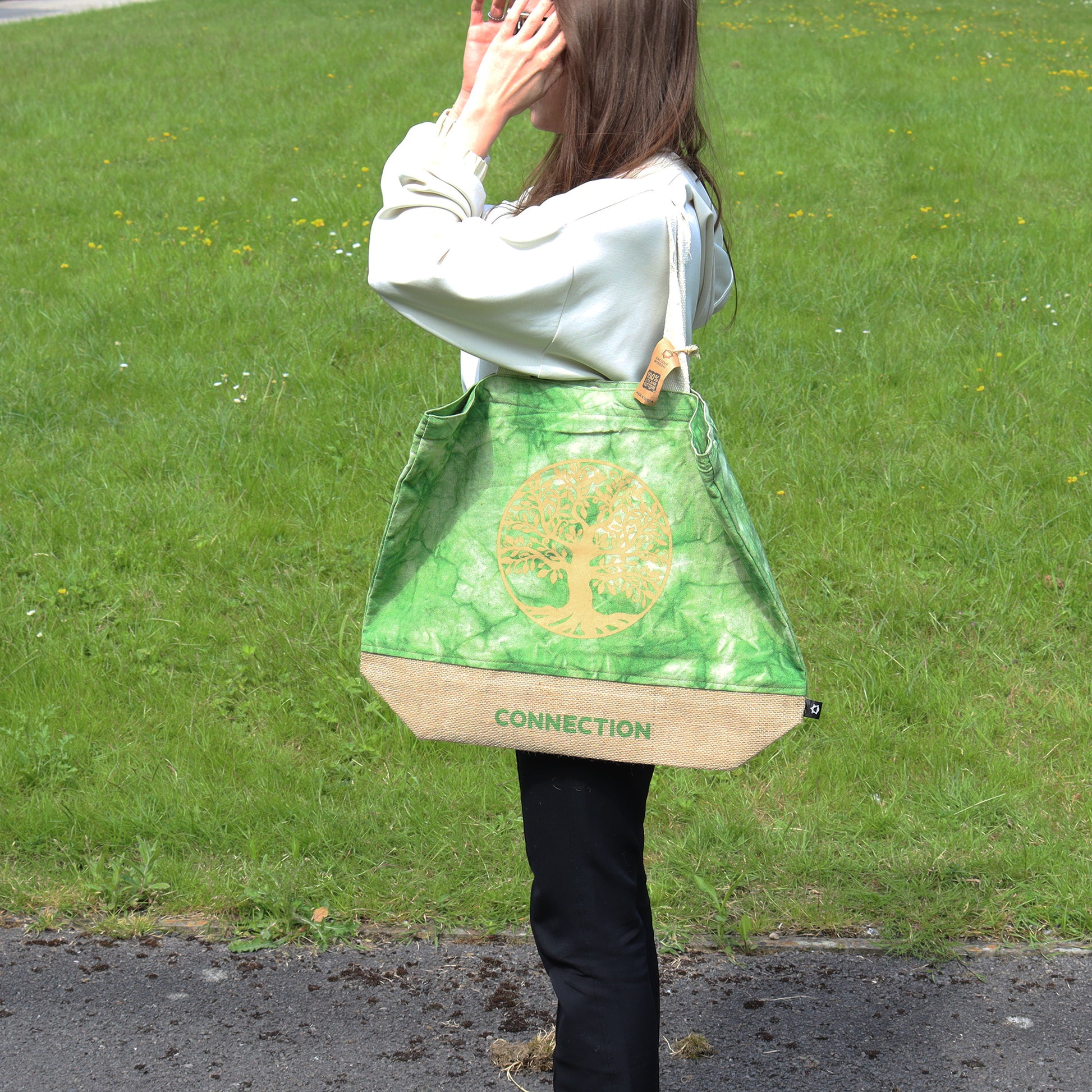 Bolso Natural Tye-Dye Verde – Conexión con la Vida 50 cm x 22