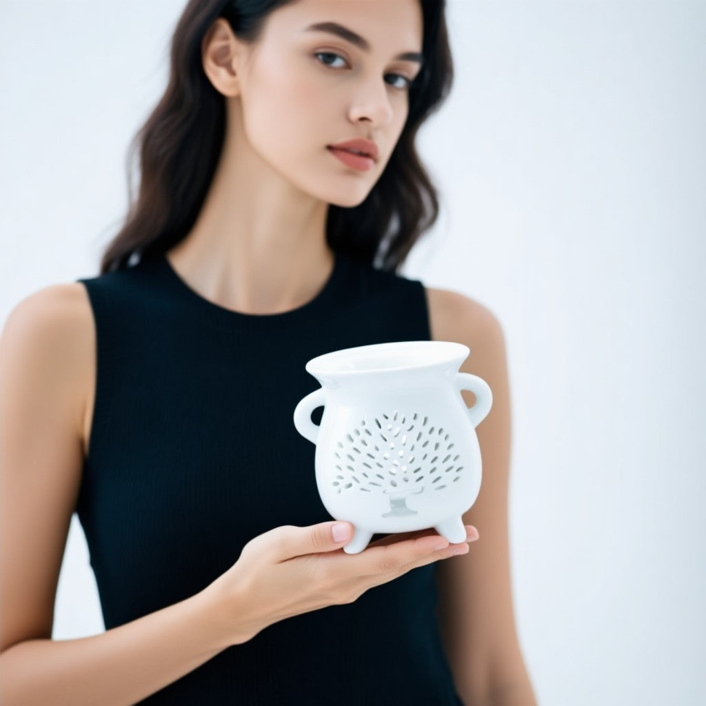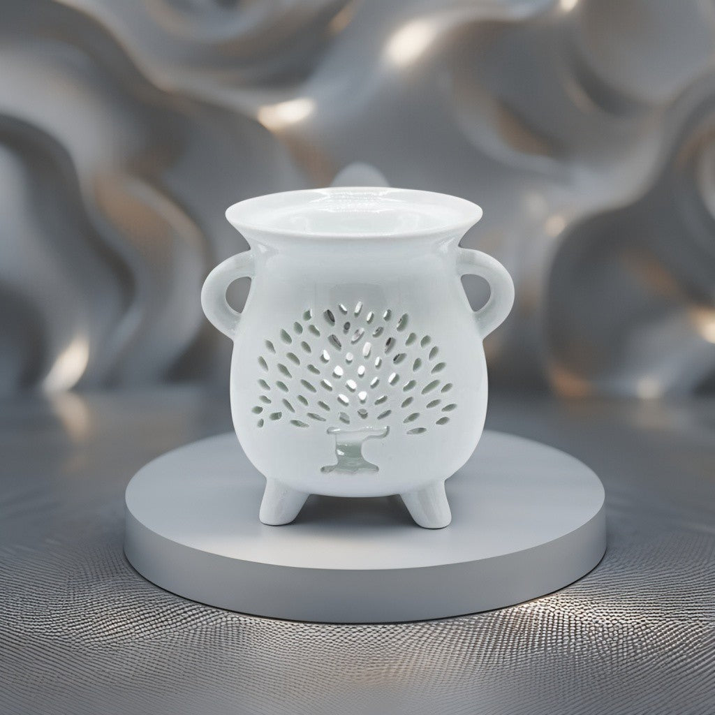 Quemador de Aceite Blanco – Caldero con Árbol de la Vida