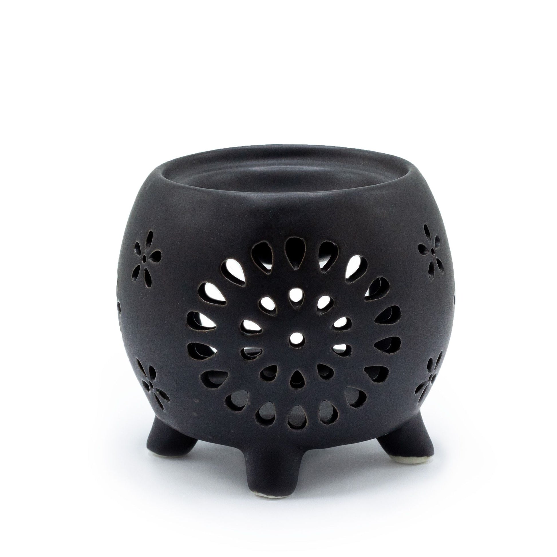 Crea un ambiente acogedor y lleno de calma con este quemador de aceite en cerámica negro mate.